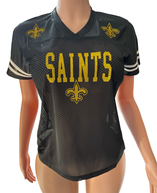 Customized Gold Glitter Wording Detailed Athletic Breathable Mesh Body Jersey. (100% Polyester)