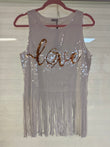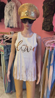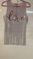 White/Gold Sequin Tank Fringe Shirt (fits true to size)