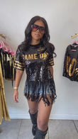 Sequin Detailed Fringe Bottom Top (model wearing small, little stretch)