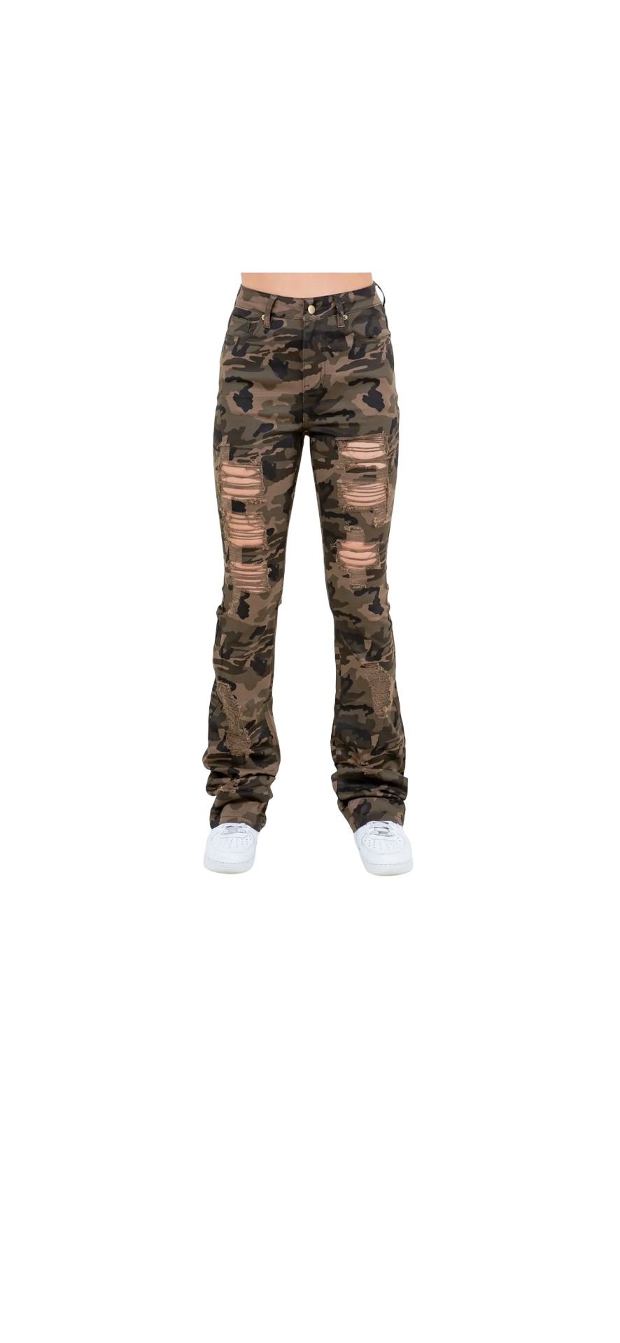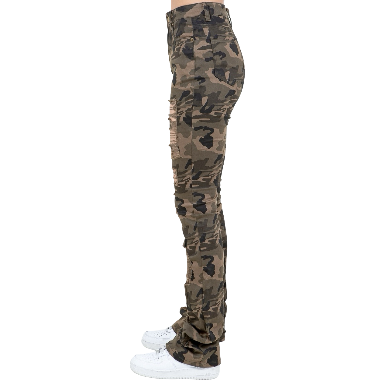 Stacked Distressed Cargo Camouflage Pants (slim skinny fit, 97% cotton, 3% spandex, great stretch)