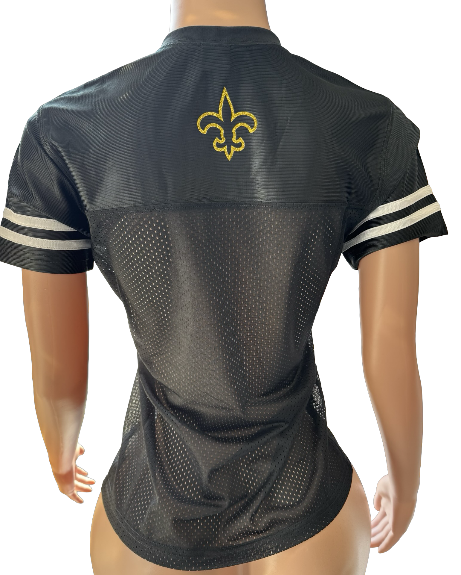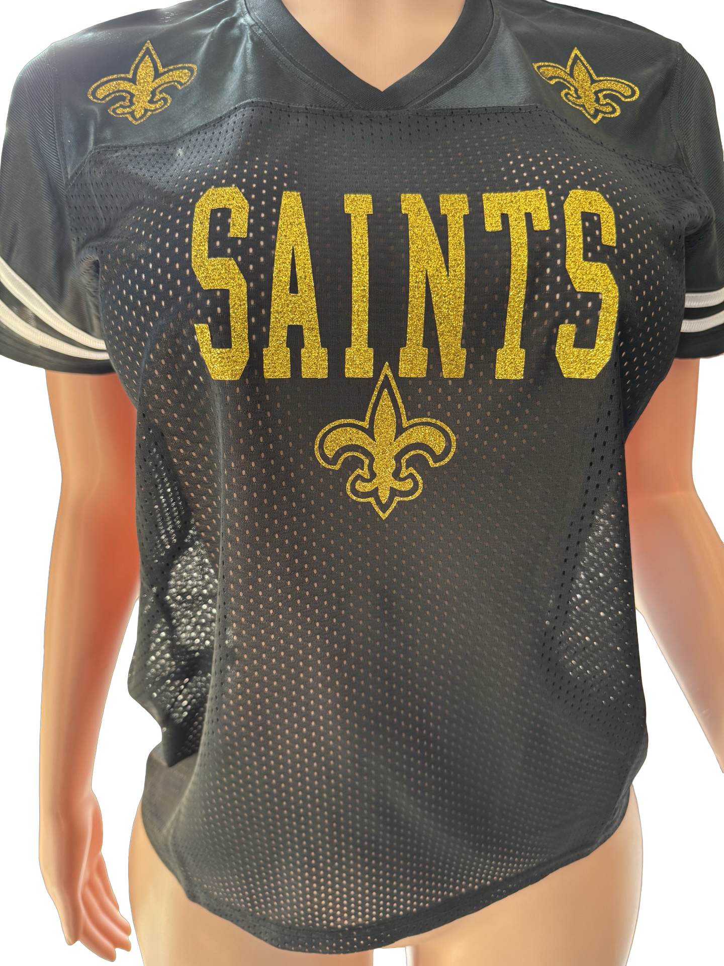 Customized Gold Glitter Wording Detailed Athletic Breathable Mesh Body Jersey. (100% Polyester)